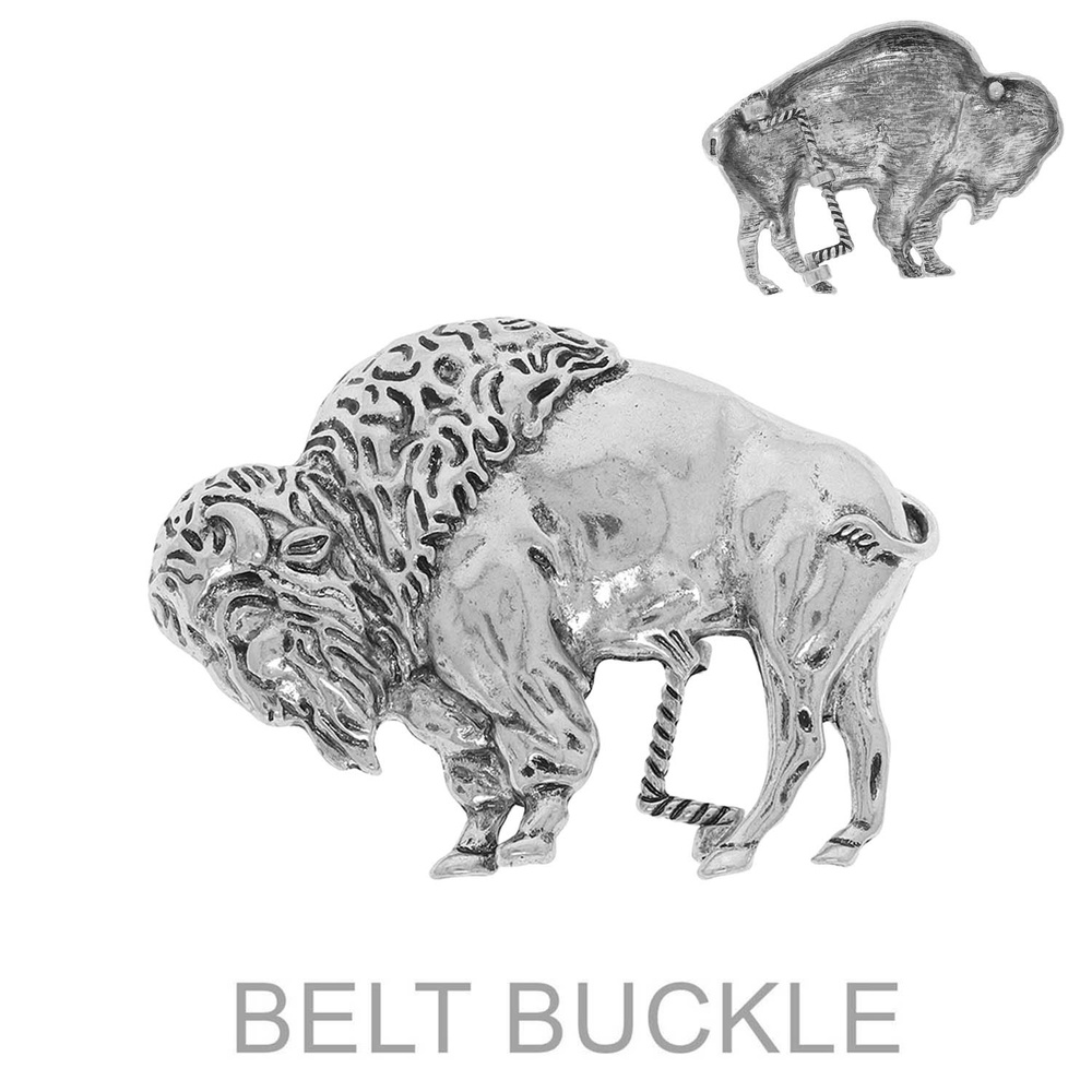 WESTERN BELT BUCKLE WITH BUFFALO FIGURE IN OXIDIZED SILVER TONE METAL