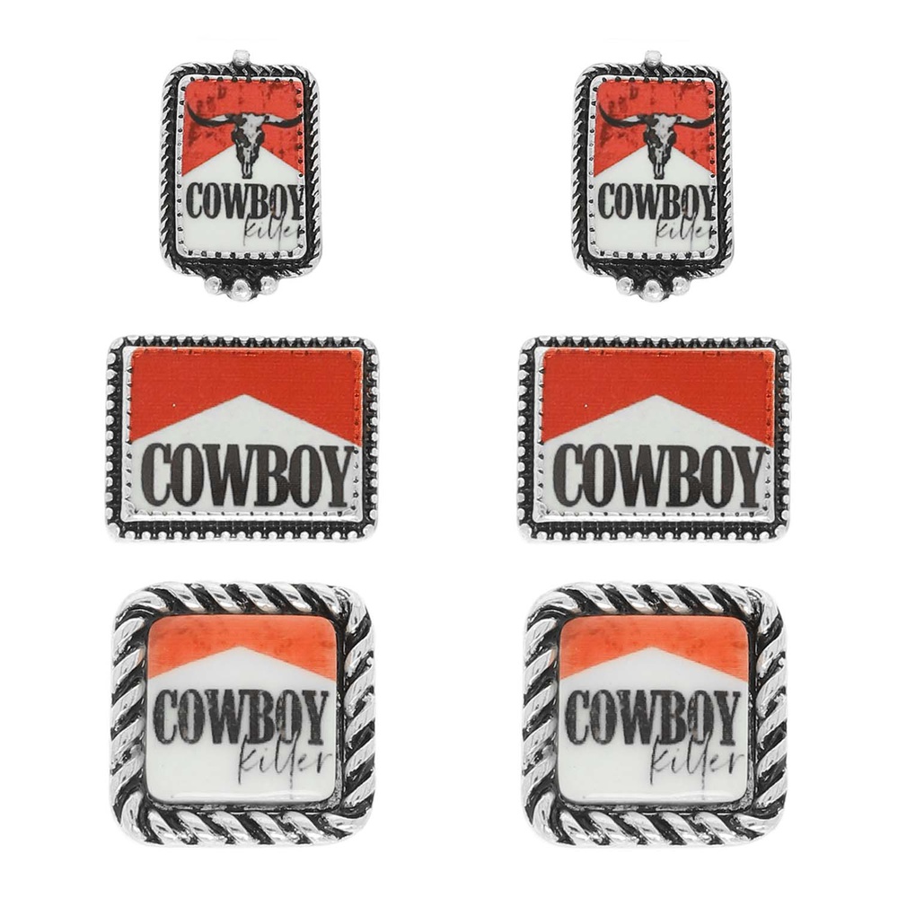WESTERN COWBOY KILLER SLOGAN THEME GRAPHIC PRINT EARRING SET