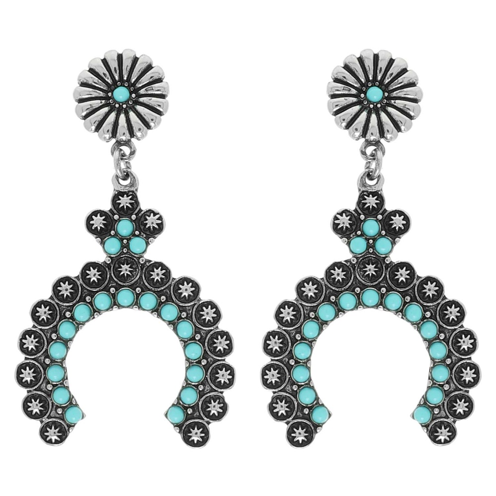 WESTERN FLORAL TURQUOISE HORSESHOE CONCHO POST DANGLE EARRINGS