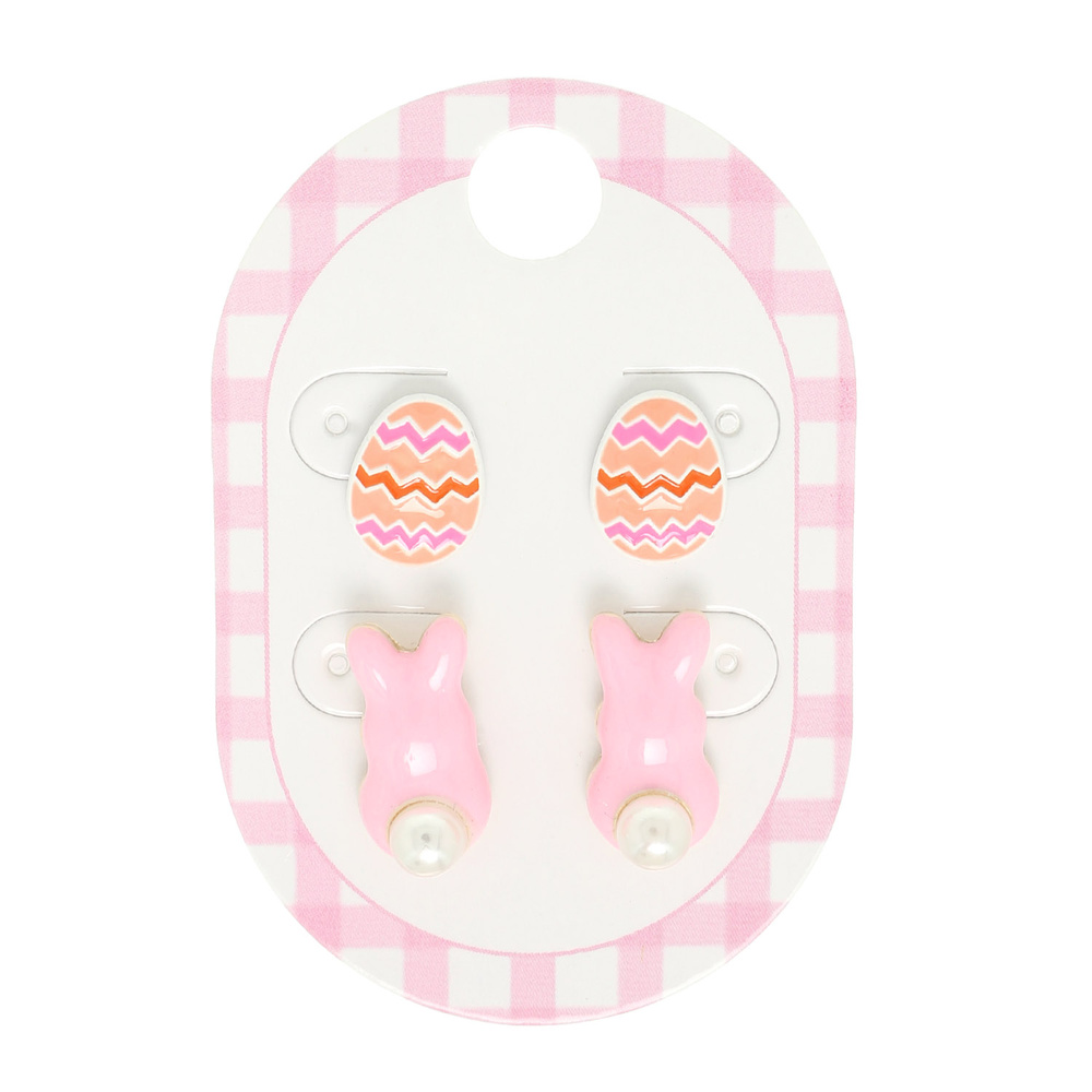 ENAMEL PEARL EASTER BUNNY AND EGG STUD EARRING SET
