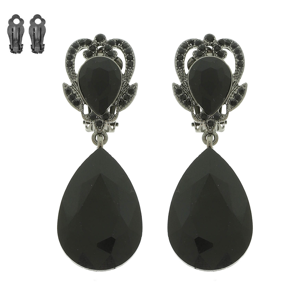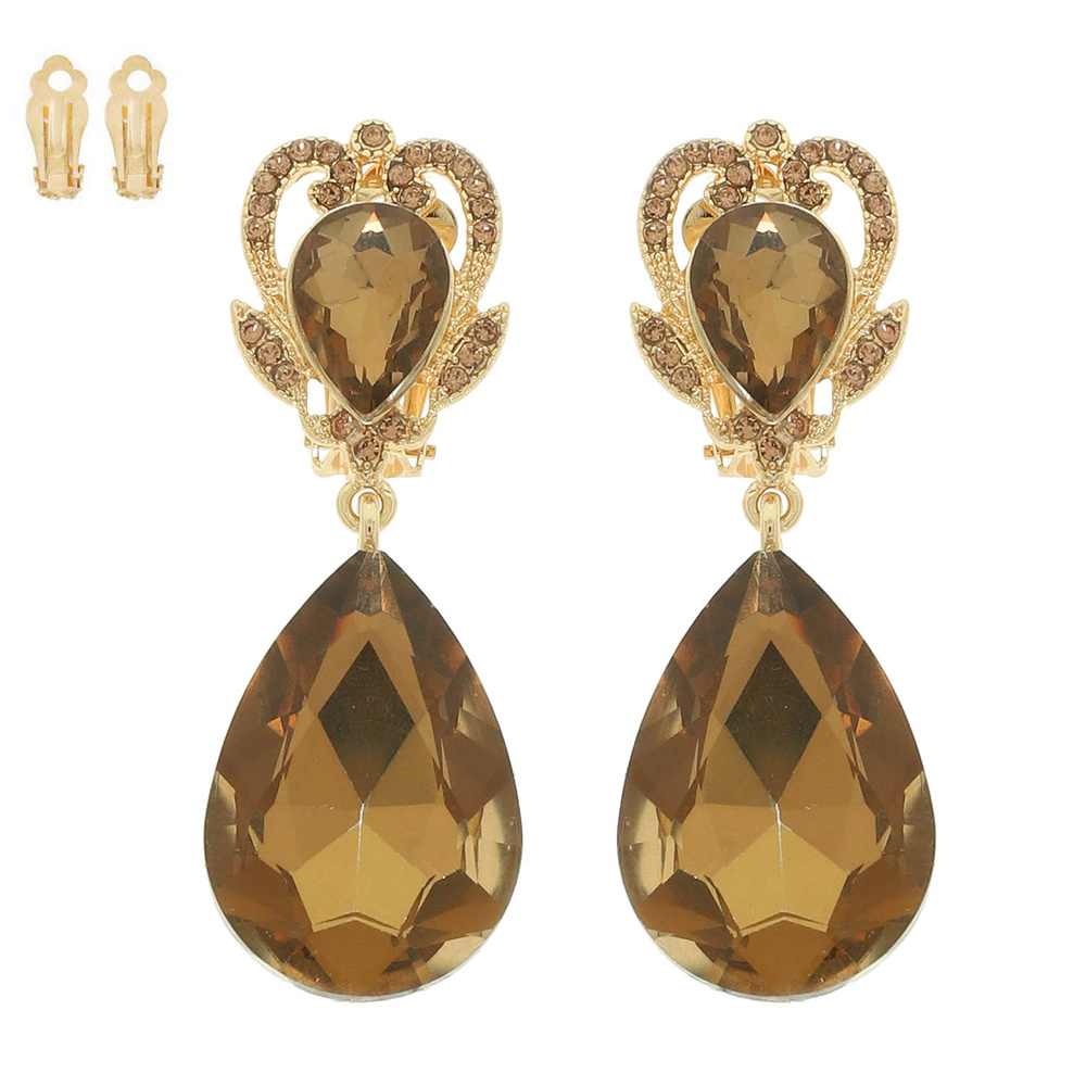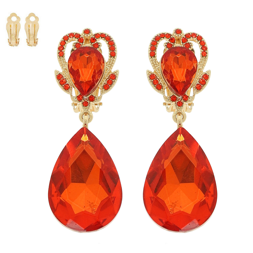 RHINESTONE CROWN TEARDROP CLIP-ON EARRINGS AVAILABLE IN MULTIPLE COLORS