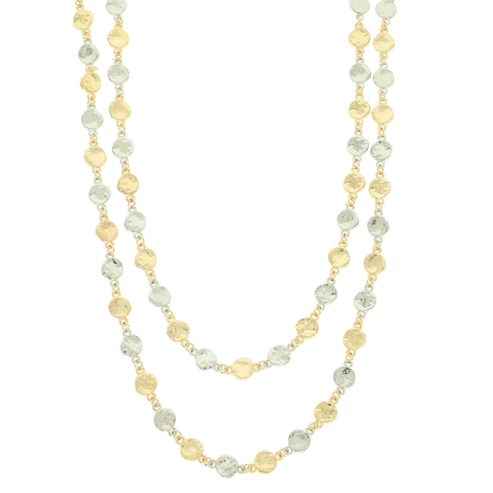 MULTI STRAND TEXTURED DISC STATION NECKLACE