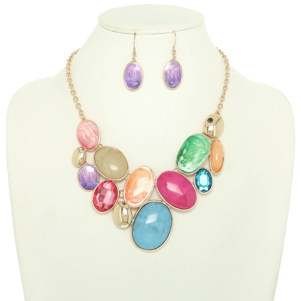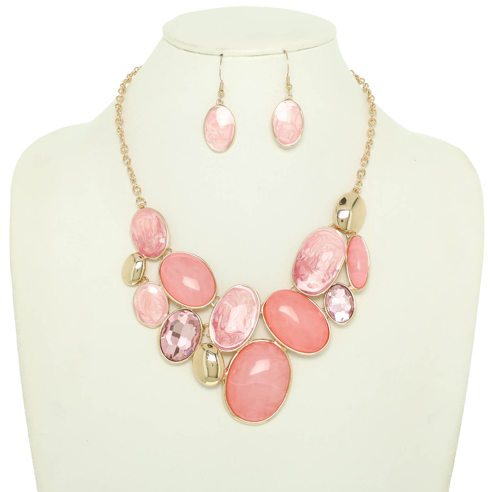 Oval Stone Cluster Necklace Set