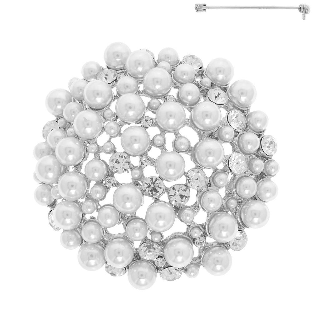 PEARL CRYSTAL DOME CLUSTER BROOCH PIN