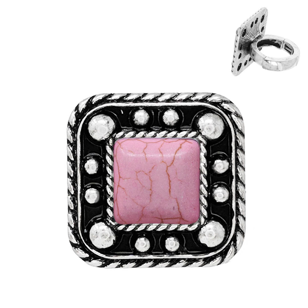 WESTERN BUBBLE STRETCH RING WITH TURQUOISE IN OXIDIZED SILVER TONE METAL BAND