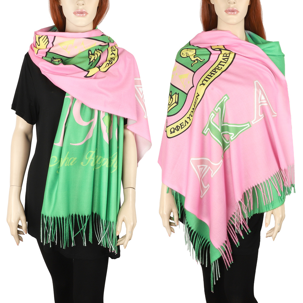 MULTICOLOR ALPHA KAPPA ALPHA SORORITY 1908 FRINGE SHAWL SCARF