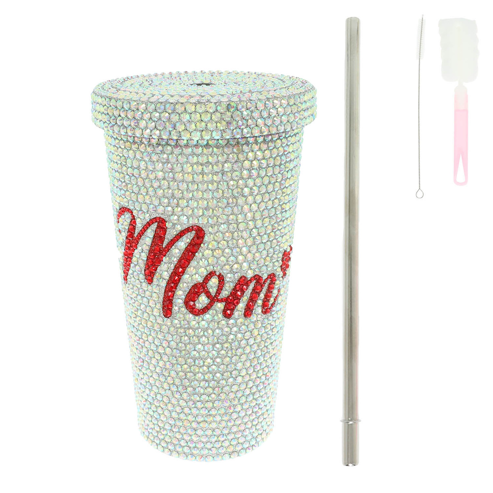 “MOM" RHINESTONE PAVE STAINLESS STEEL DOUBLE WALL TUMBLER