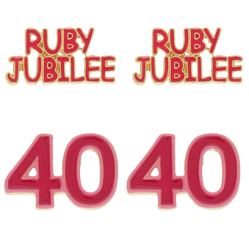 MIX AND MATCH ENAMEL COATED "RUBY JUBILEE" AND "40" STUD EARRING SET