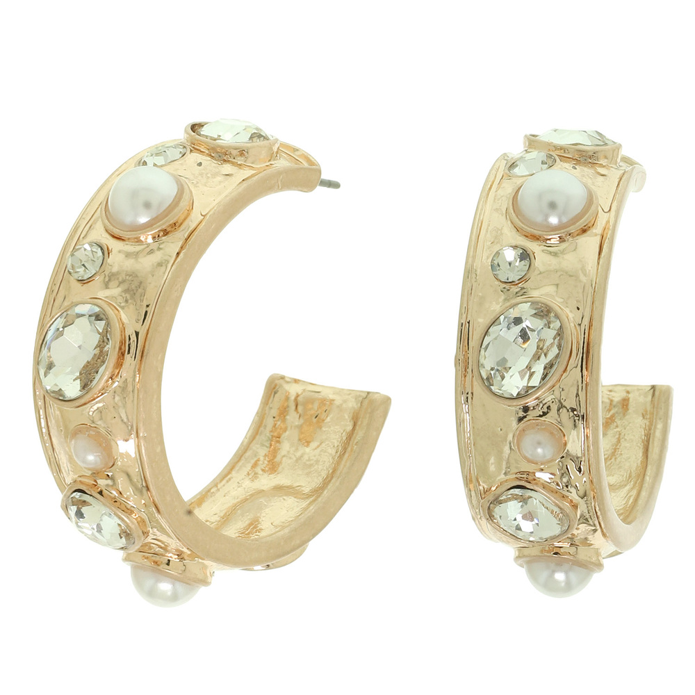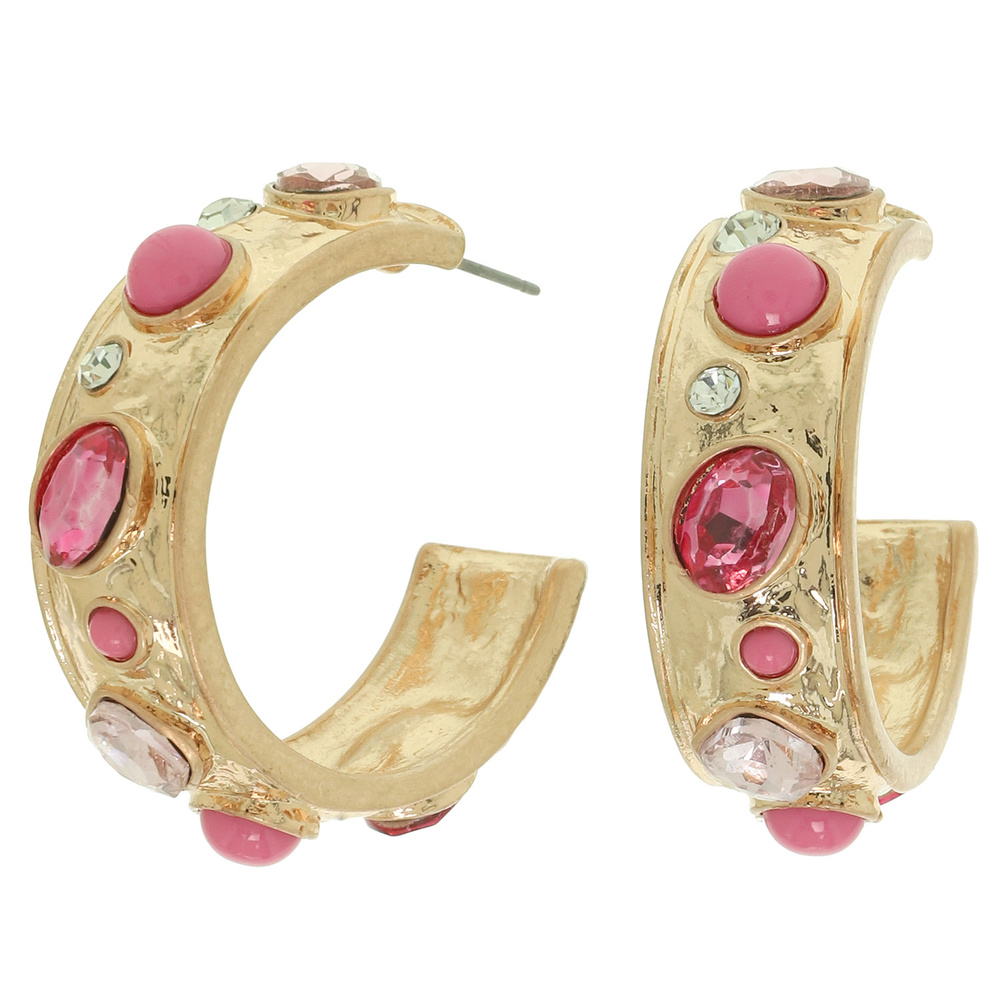 MULTICOLOR CRYSTAL ACCENT STUDDED HOOP POST EARRINGS WITH GOLD TONE METAL