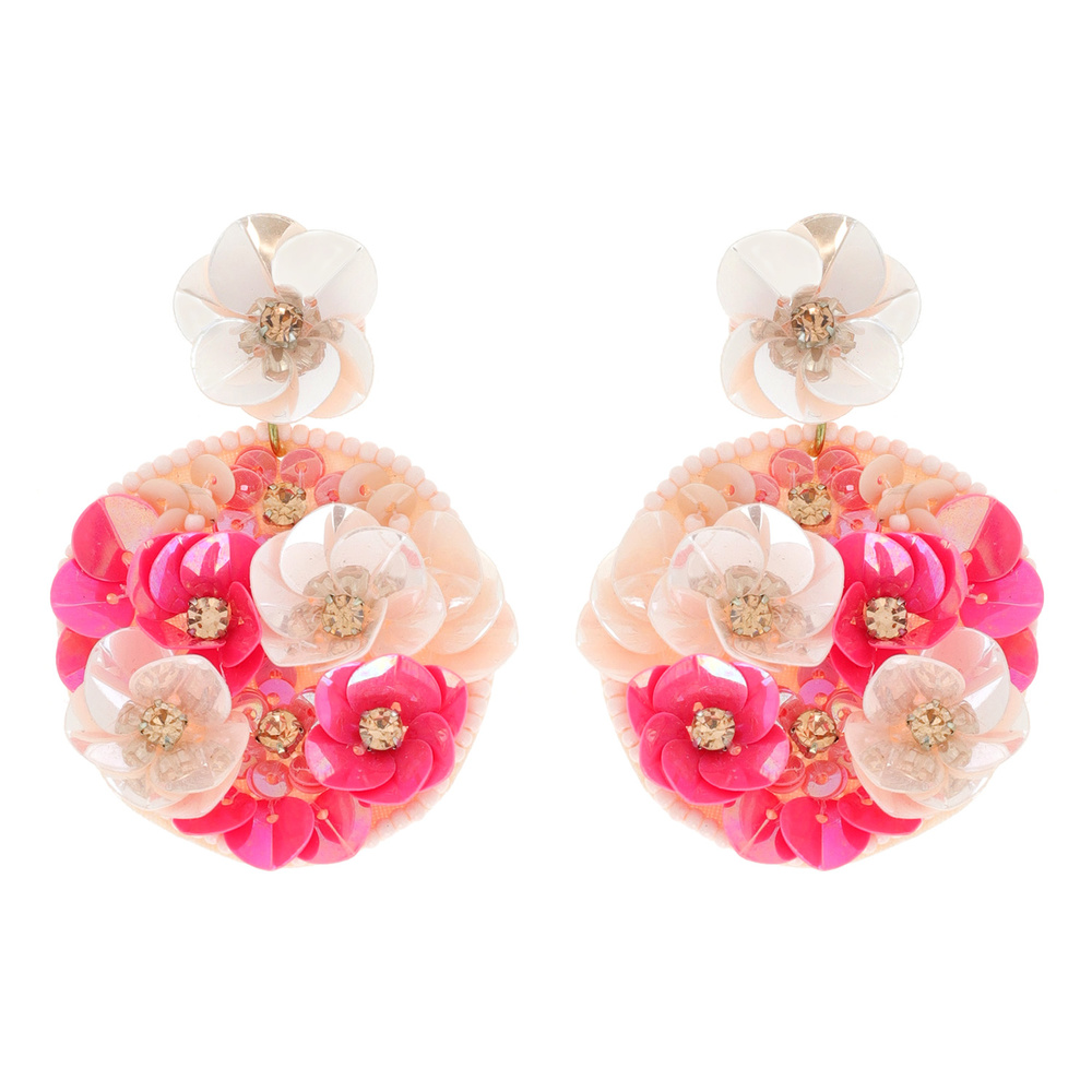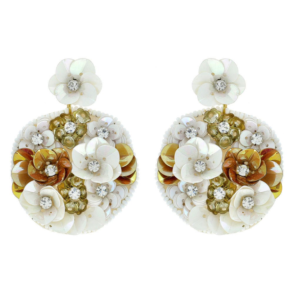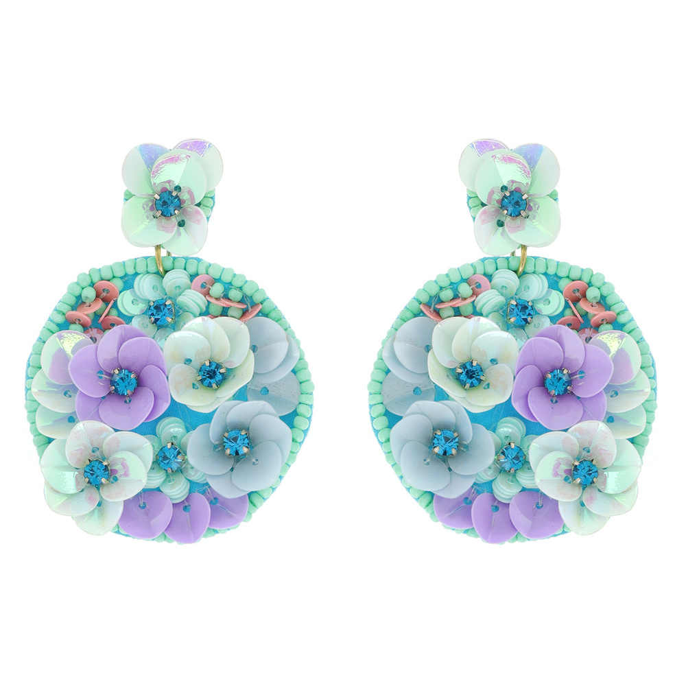 Sequin Flowers Round Drop Earrings With Rhinestone Centers