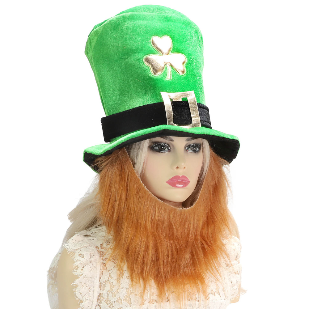 SAINT PATRICKS DAY THEME FELT LEPRECHAUN SHAMROCK TOP HAT WITH BEARD