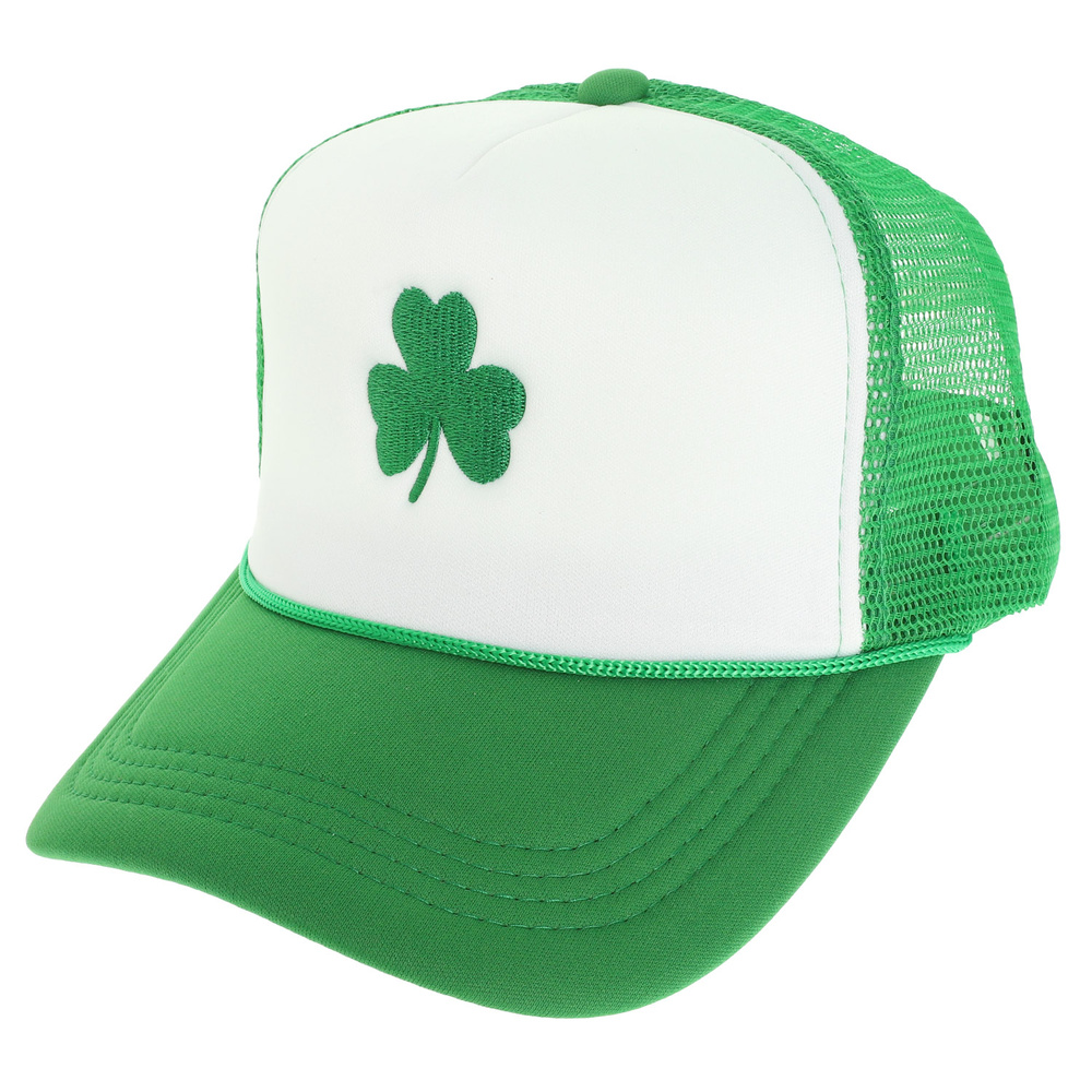 SAINT PATRICKS DAY THEME TRUCKER HAT WITH GREEN EMBROIDERED SHAMROCK