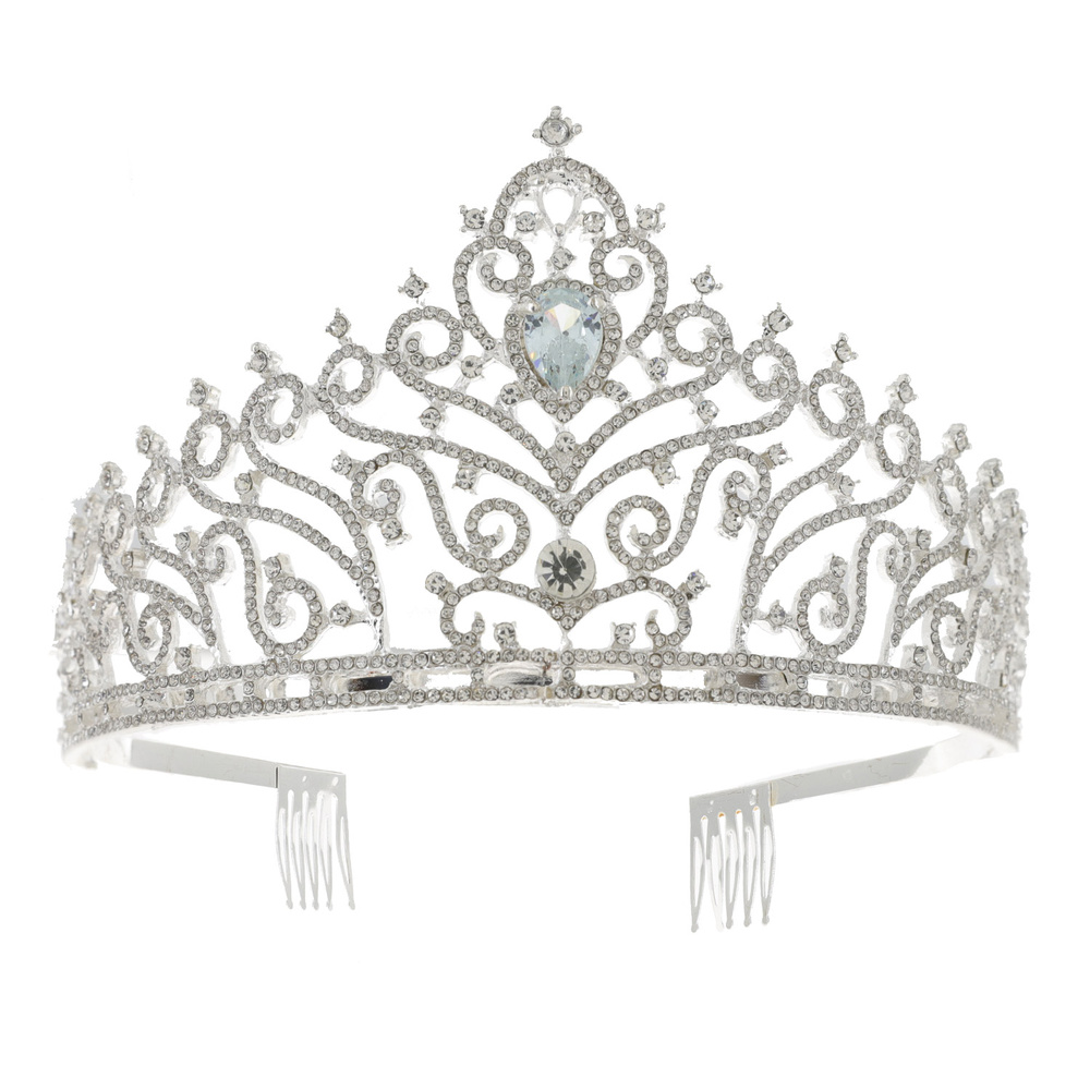 Crystal Rhinestone Pave Teardrop Cut Gemstone Filigree Swirl Tall Tiara Crown With Comb