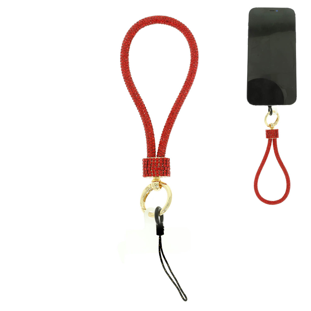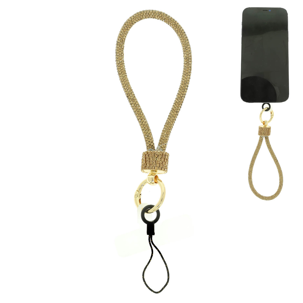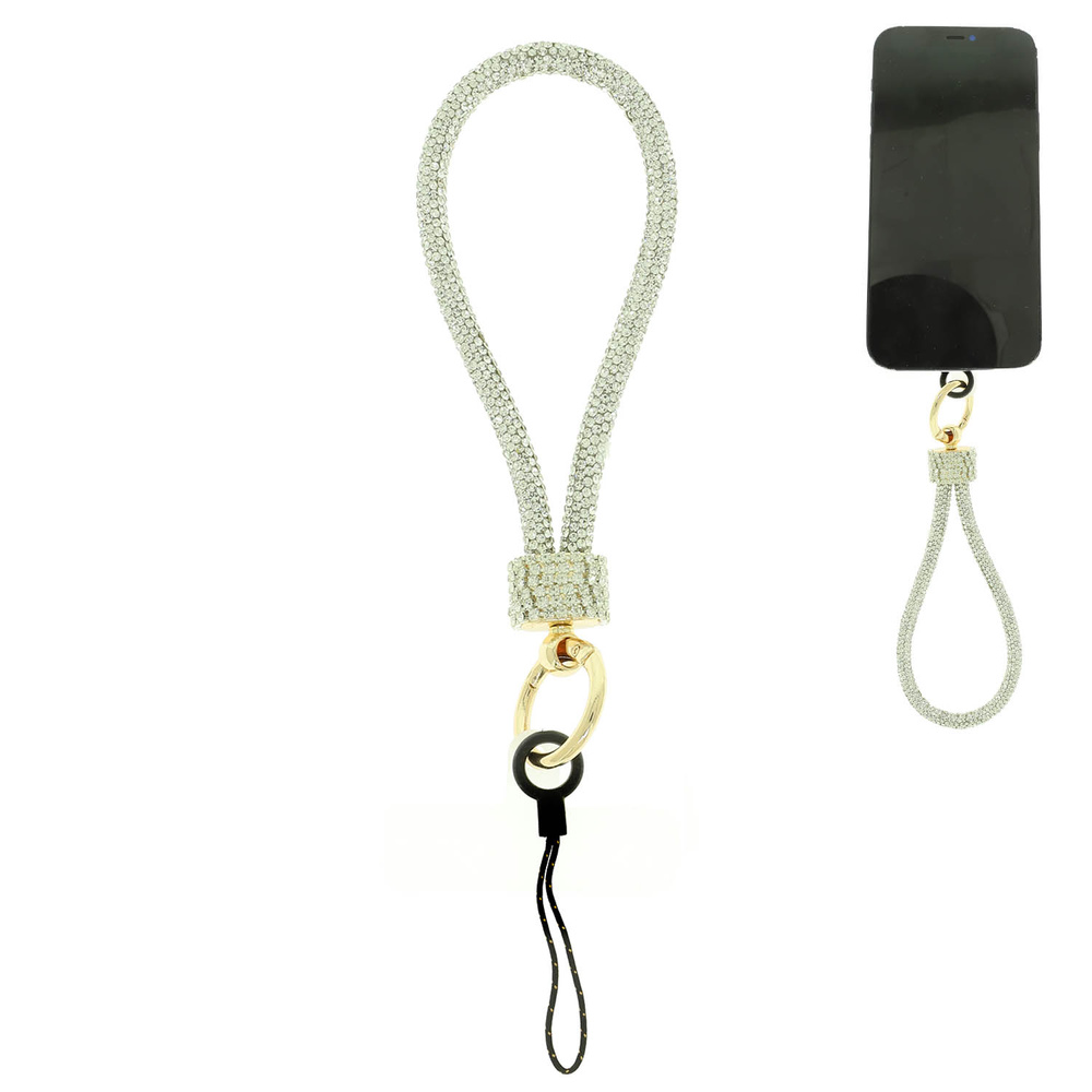 RHINESTONE PHONE WRISTLET STRAP WITH CRYSTAL PAVE BARREL