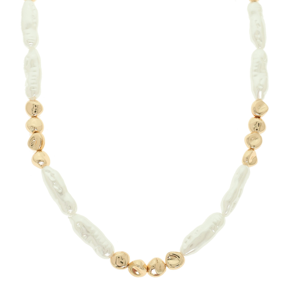 IRREGULAR PEARL BAR NECKLACE WITH POLISHED ACCENT BEADS