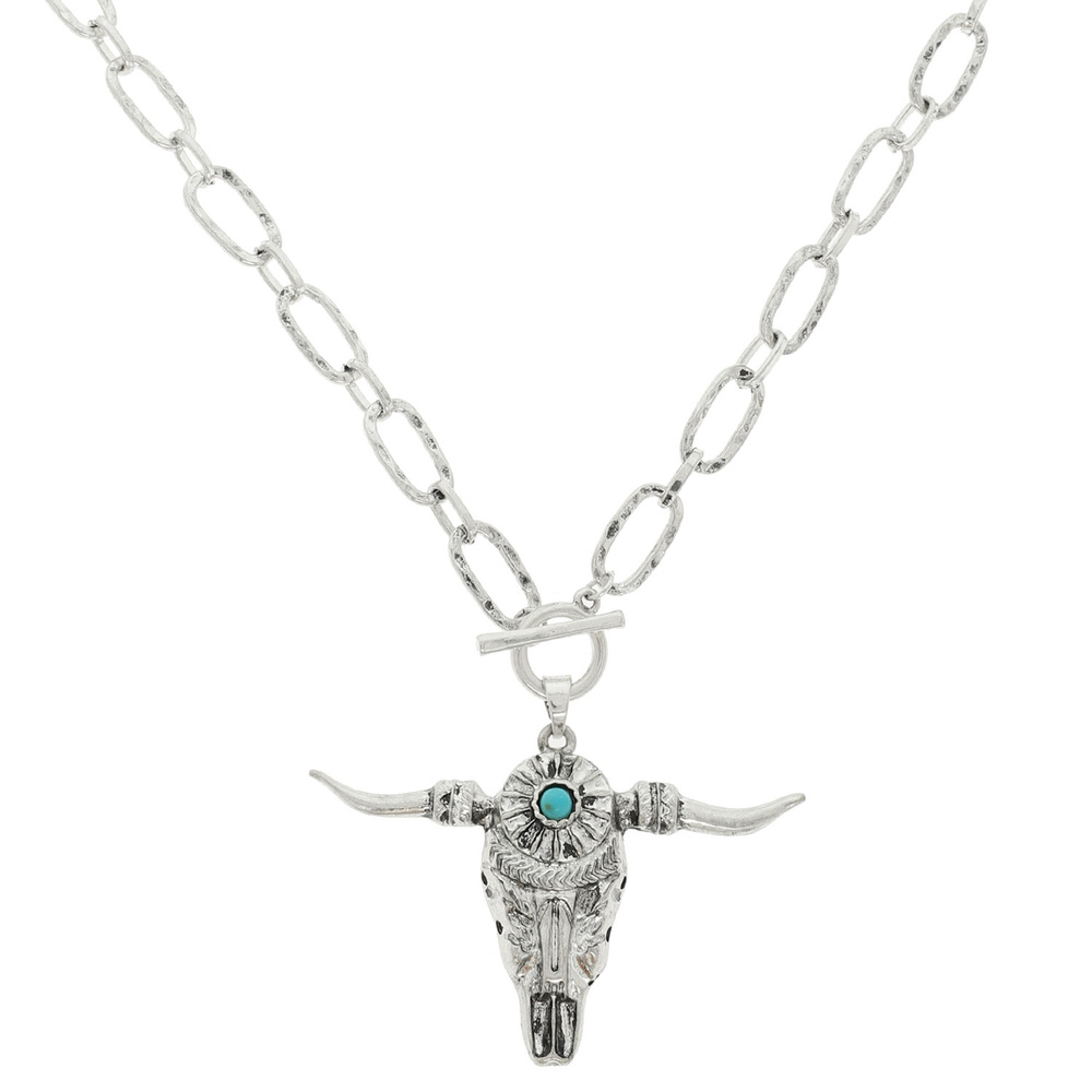TURQUOISE LONGHORN SKULL PENDANT NECKLACE L WITH TOGGLE CLASP
