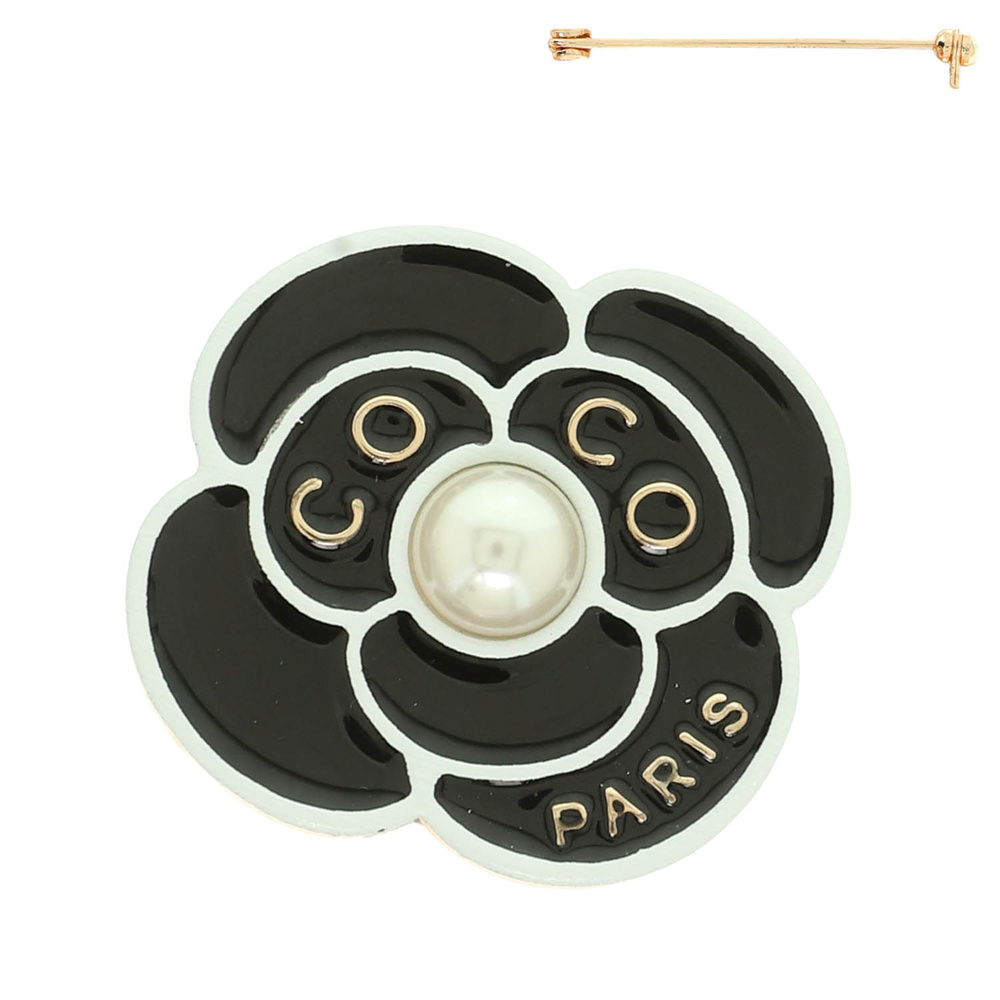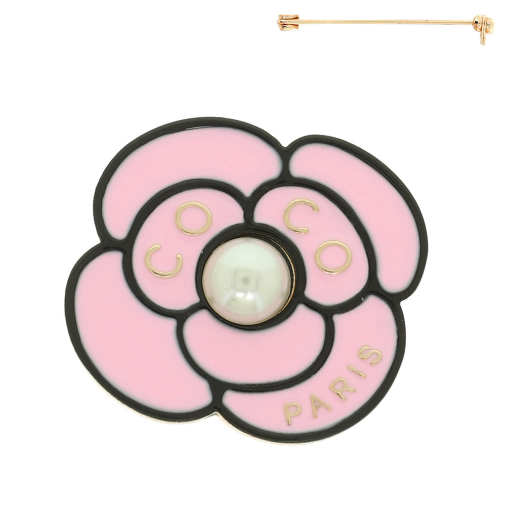CAMELLIA INSPIRED ENAMEL FLOWER BROOCH WITH PEARL CENTER