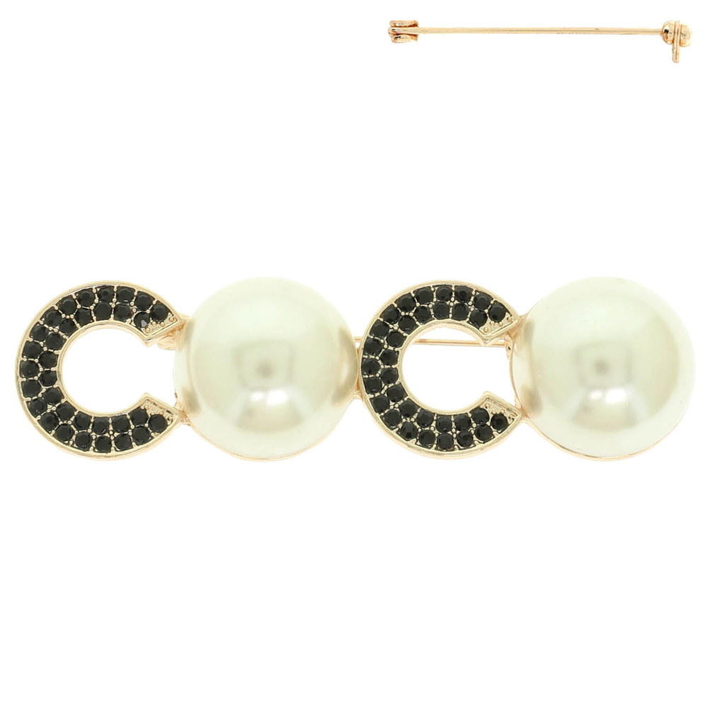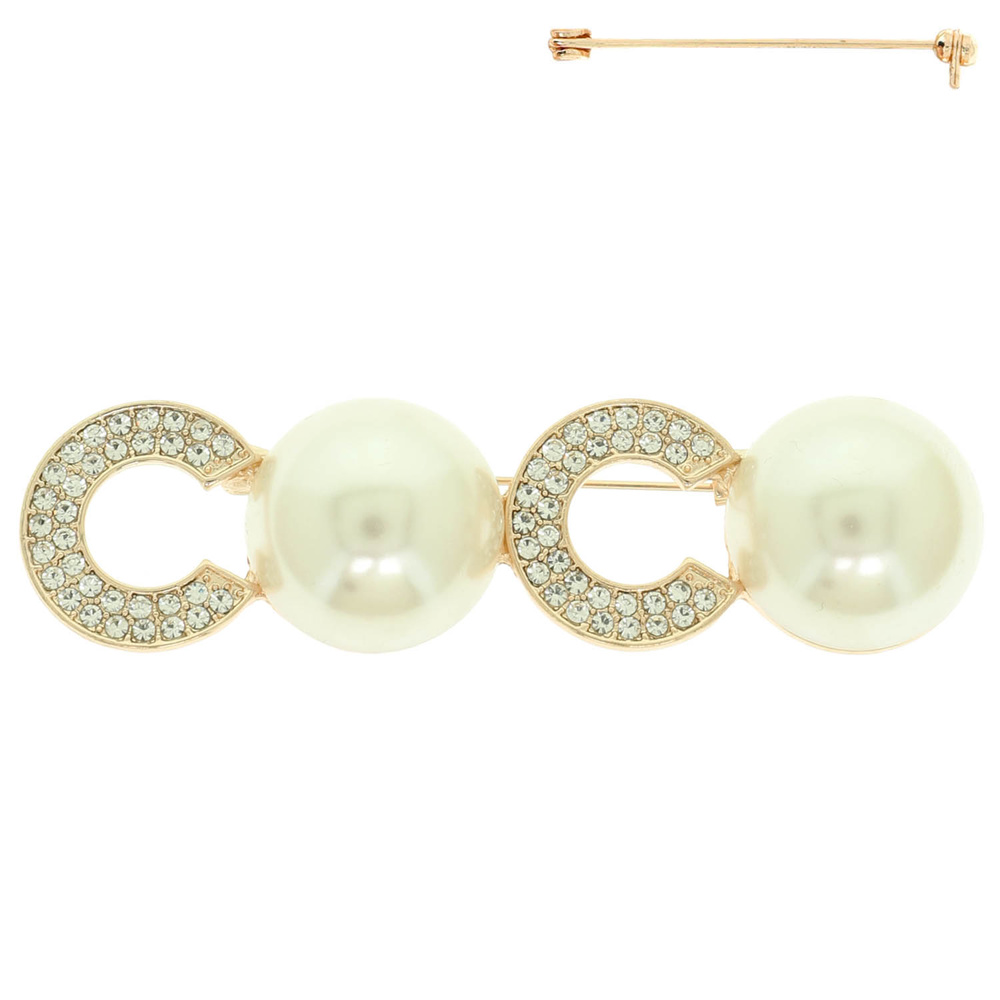 C SHAPE BROOCH PIN WITH PEARL AND RHINESTONE ACCENTS