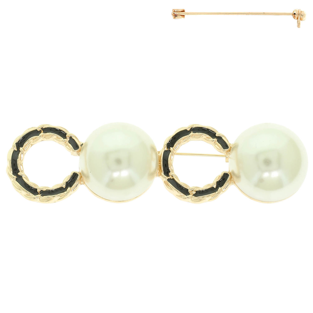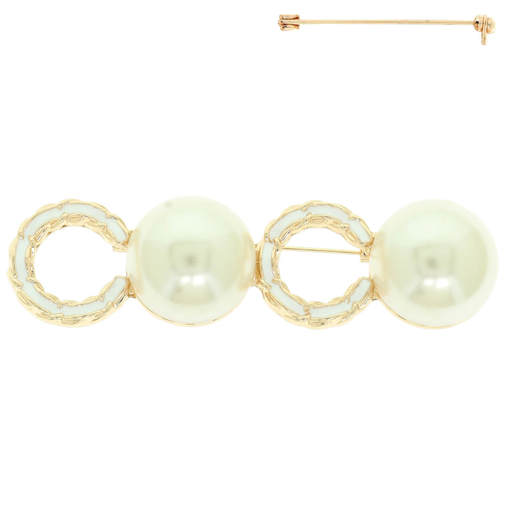 C SHAPE BROOCH PIN WITH ENAMEL AND PEARL ACCENTS