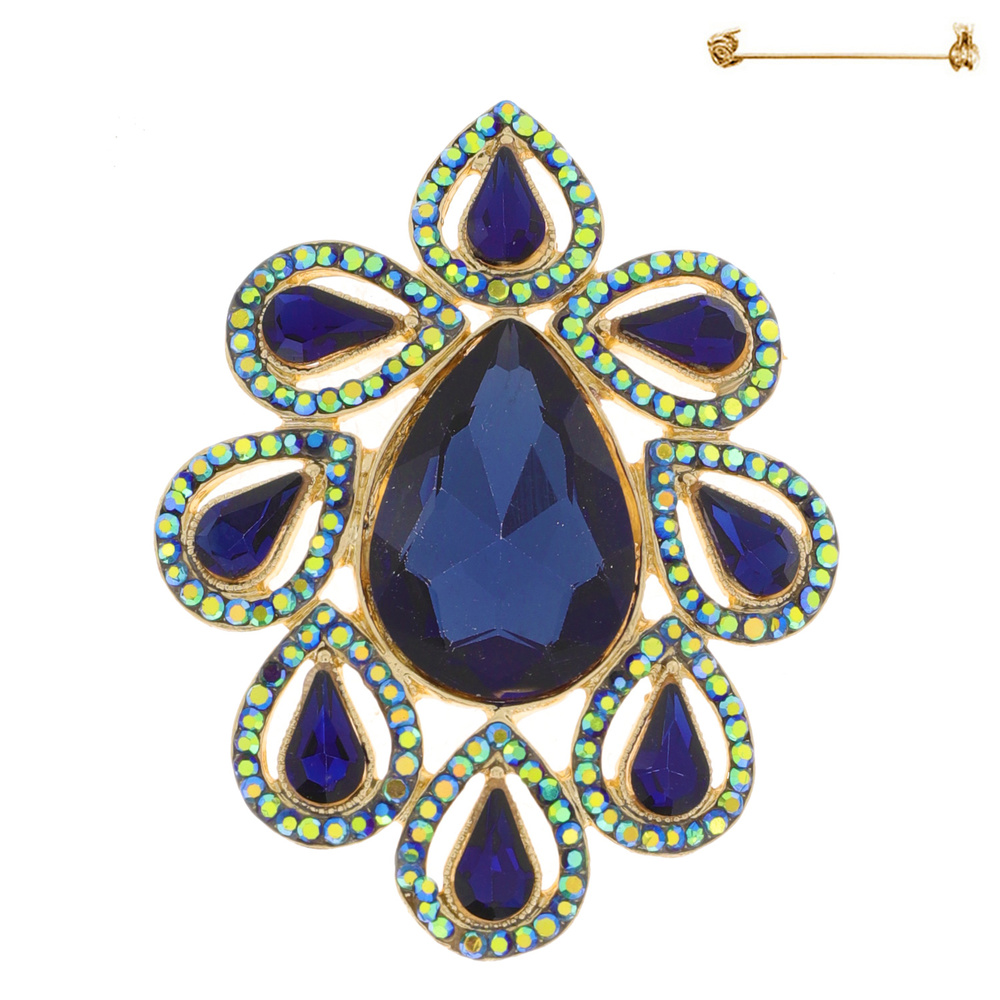 CRYSTAL RHINESTONE TEARDROP CLUSTER BROOCH PIN