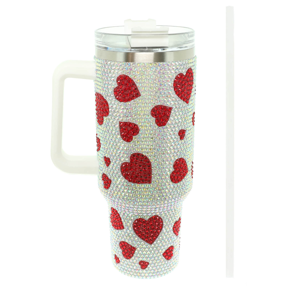 HEART PATTERN RHINESTONE PAVE STAINLESS STEEL DOUBLE WALL TUMBLER
