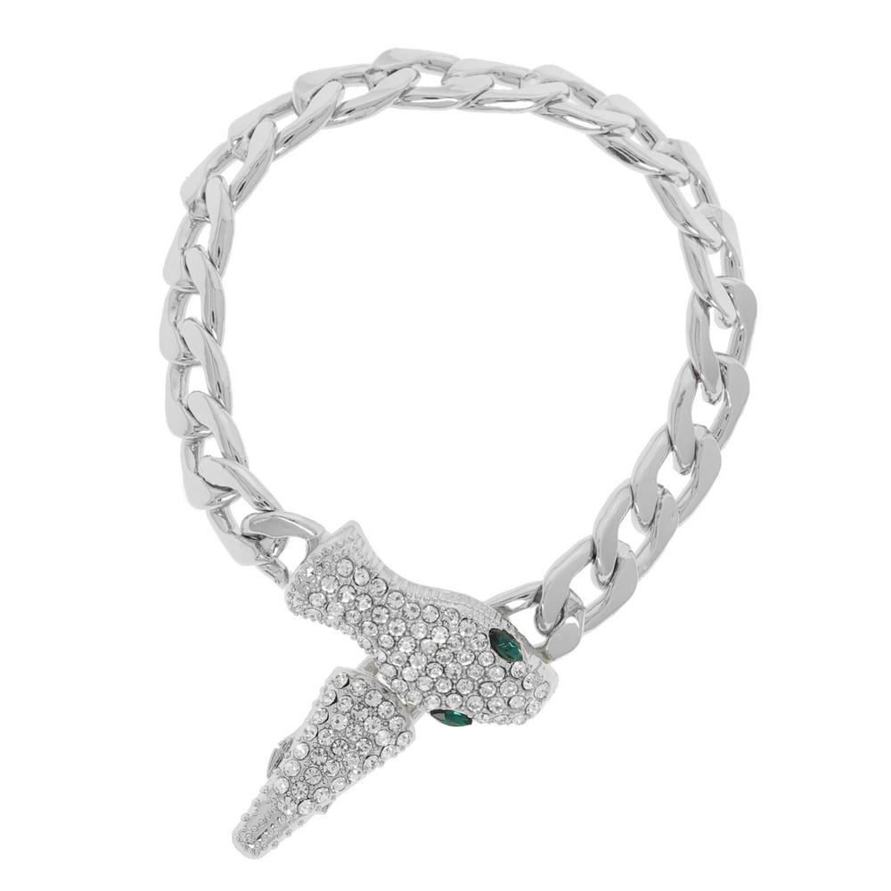 RHINESTONE PAVED SNAKE CURB LINK BRACELET WITH CRYSTAL EYES