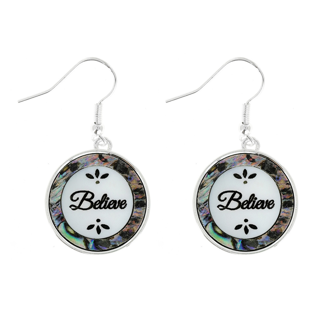 RELIGIOUS "BELIEVE" ABALONE SHELL EARRINGS