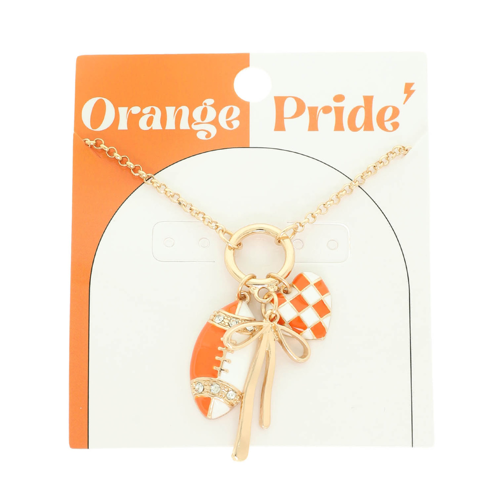 GAME DAY NECKLACE WITH ENAMELED FOOTBALL HEART BOW AND MEGAPHONE TRINKETS