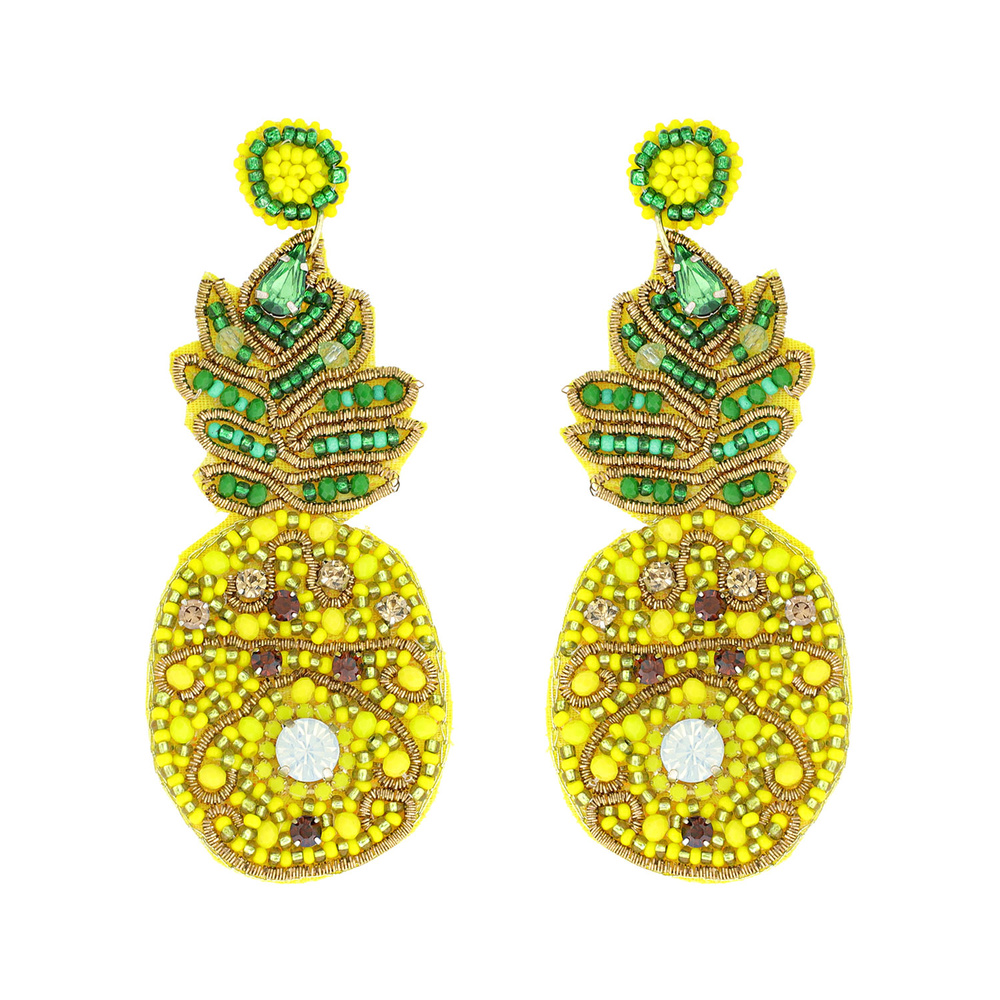 PINEAPPLE SEED BEAD HANDMADE BEADED DANGLE EARRINGS