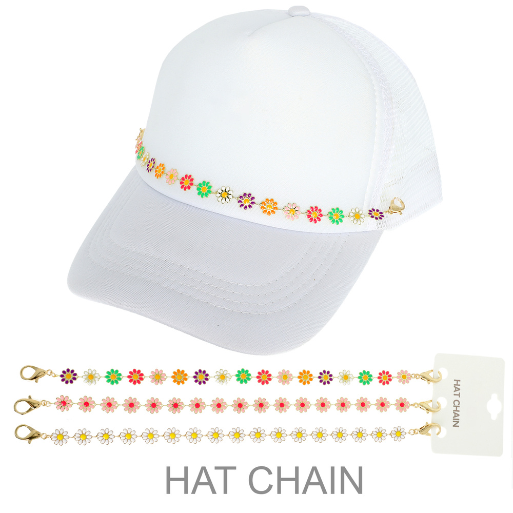 3PC MULTICOLORED ENAMEL DAISY CHARM TRUCKER HAT CHAIN SET