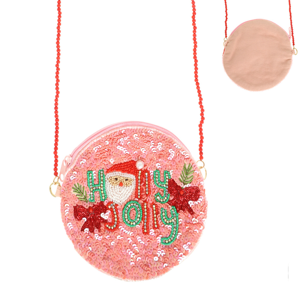 CHRISTMAS "HOLLY JOLLY" RHINESTONE SEQUINS BEAD EMBELLISHED CROSSBODY BAG