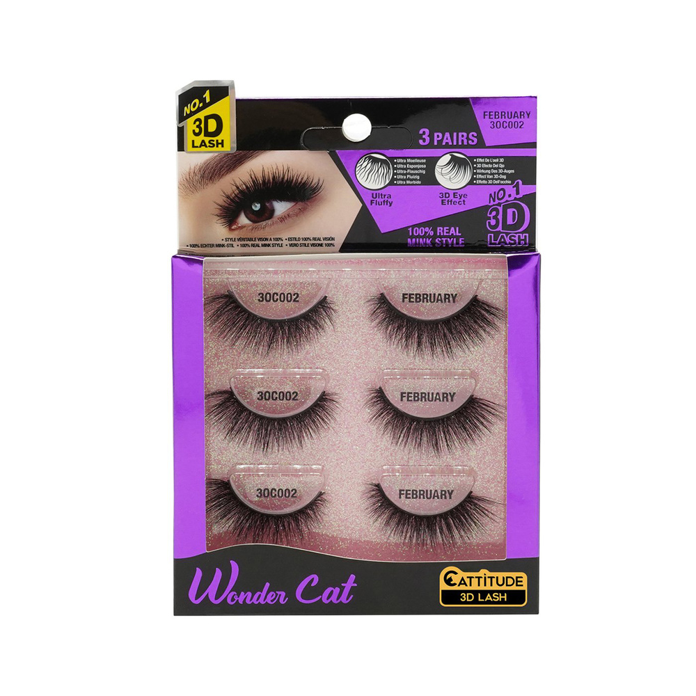 3 PAIRS WONDER CAT LASH - FEBRUARY LASHES FALSE EYELASHES