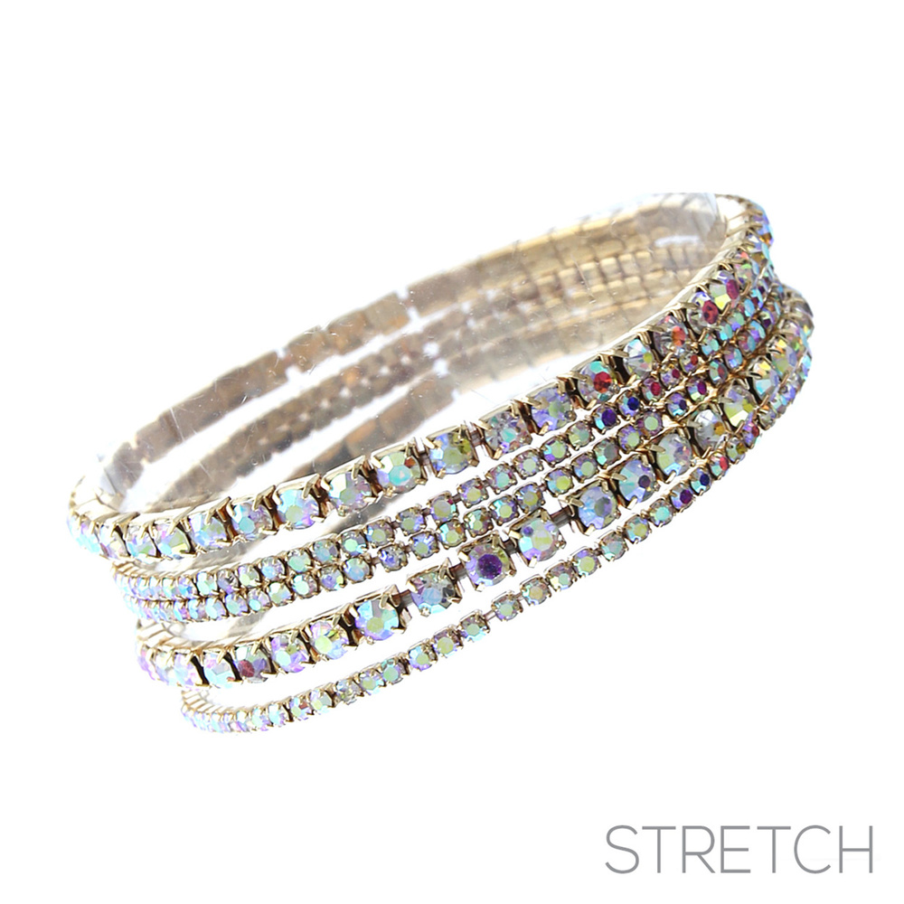 2mm/4mm 5-piece Crystal Rhinestone Stretch Layering Bracelet Set Ab-g G Rs 2mm 4mm 5 Pcs Bclt