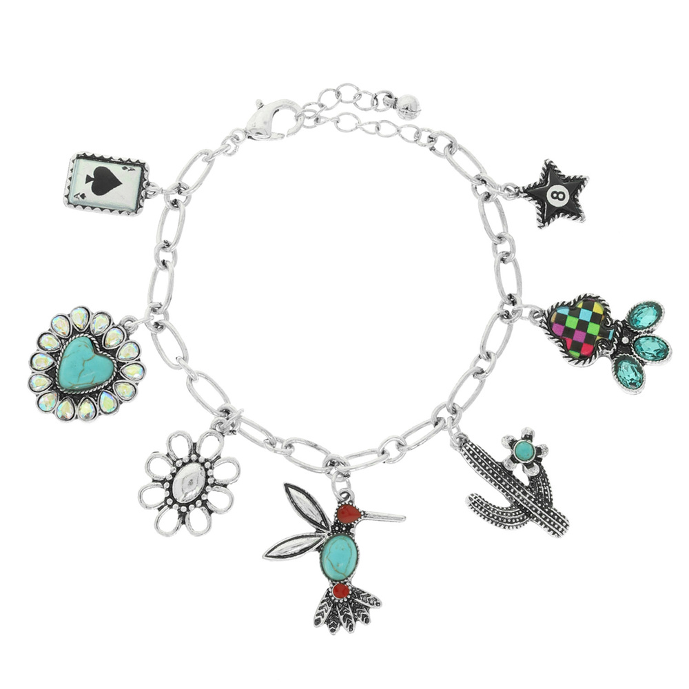 WESTERN MULTI CHARM BRACELET WITH THEMED TRINKETS