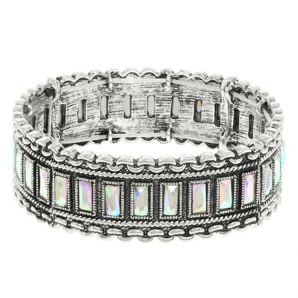 WESTERN CUFF STRETCH BRACELET WITH RECTANGLE CRYSTAL