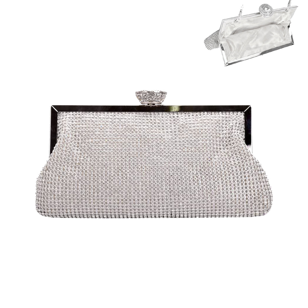 CRYSTAL RHINESTONE GEMSTONE CLOSURE EVENING CLUTCH PURSE WITH DETACHABLE METAL CHAIN STRAP