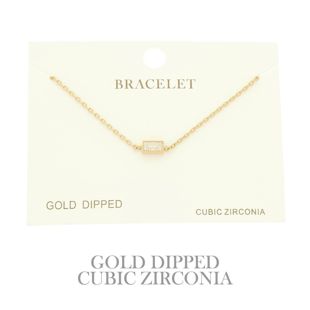 BEZEL-SET BAGUETTE CUT CUBIC ZIRCONIA SOLITAIRE BRACELET IN YELLOW GOLD PLATING