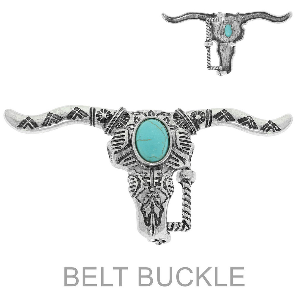 WESTERN TURQUOISE STEERHEAD BELT BUCKLE IN OXIDIZED SILVER TONE METAL