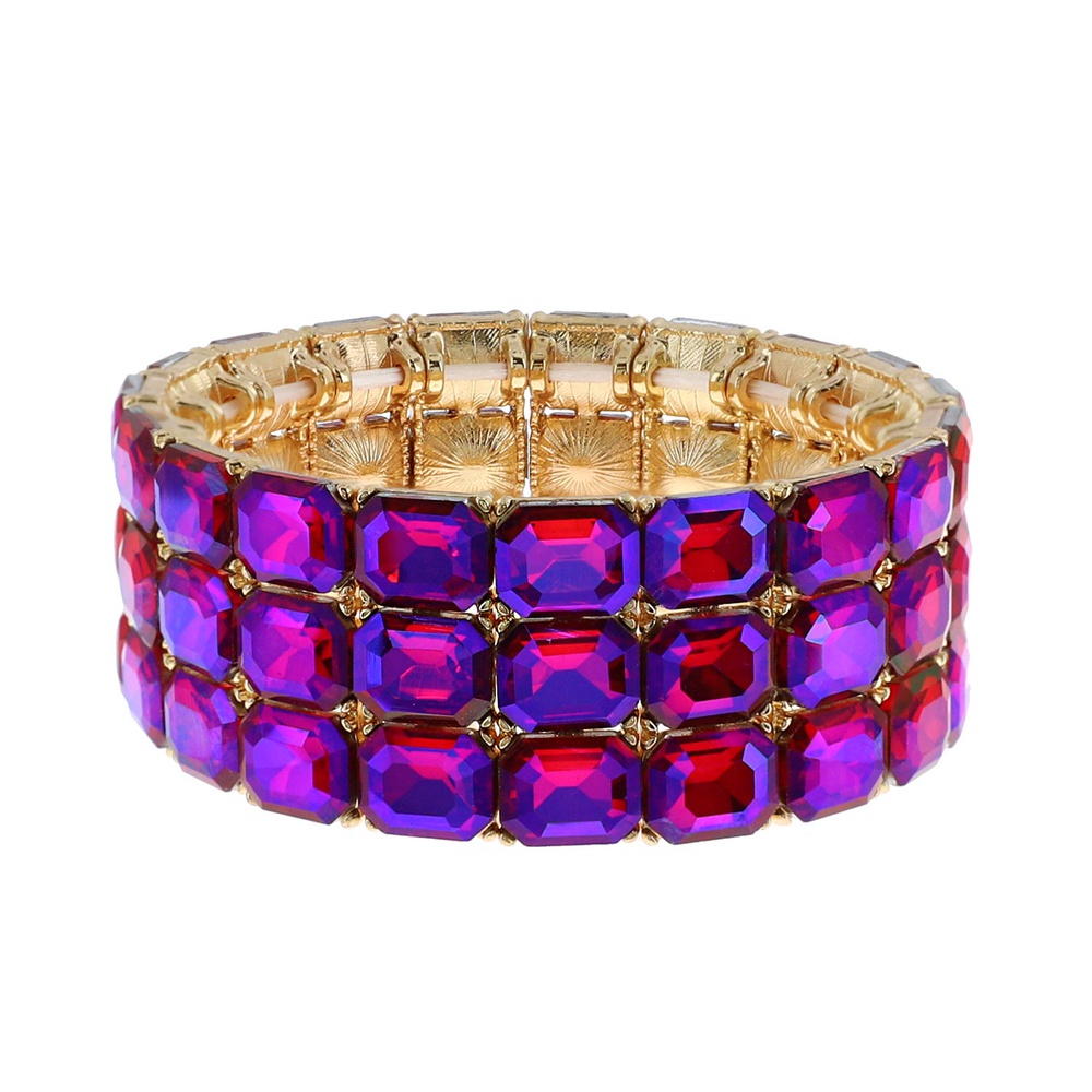 3-row Crystal Rhinestone Octagon Cut Stretch Bangle Bracelet