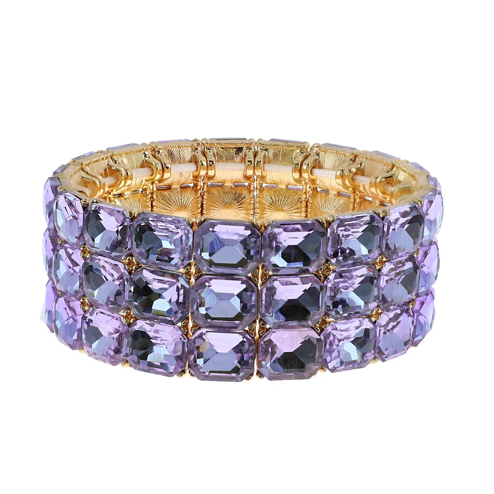 3-row Crystal Rhinestone Octagon Cut Stretch Bangle Bracelet