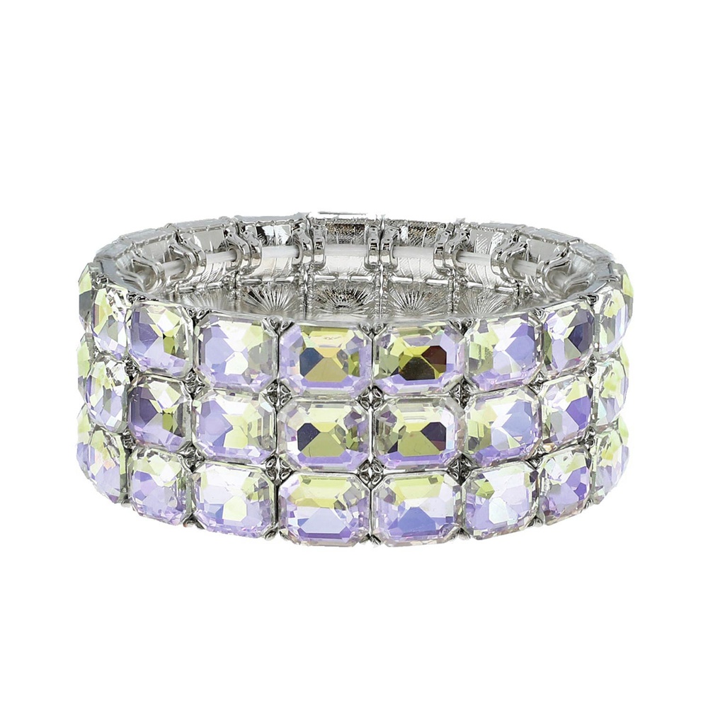 3-row Crystal Rhinestone Octagon Cut Stretch Bangle Bracelet