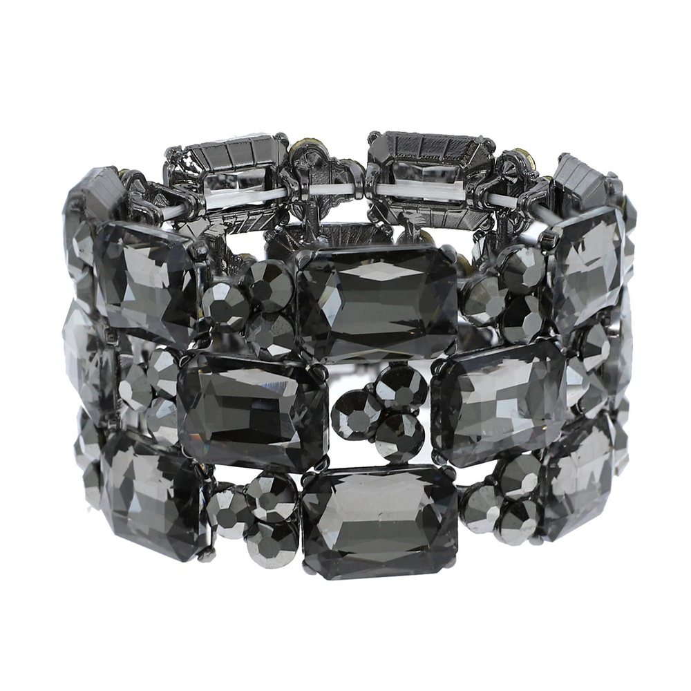 3-row Crystal Rhinestone Octagon Cut Cluster Stretch Bangle Bracelet