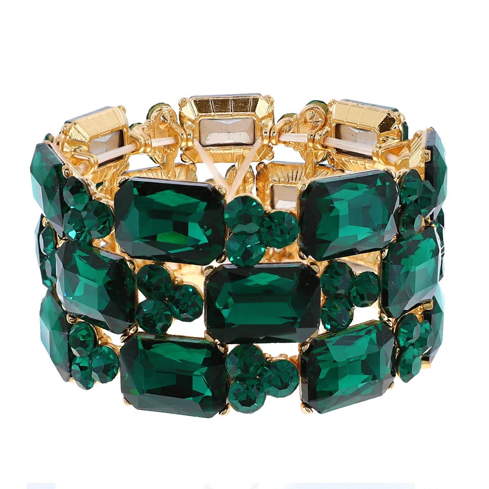 3-row Crystal Rhinestone Octagon Cut Cluster Stretch Bangle Bracelet