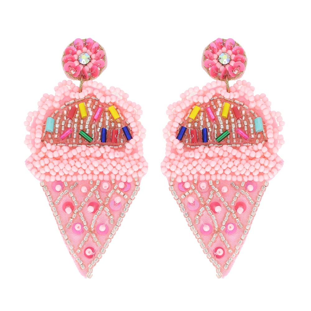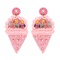 2-tier Multicolor Beaded Embroidery Long Drop Jeweled Strawberry Ice Cream Cone Earrings