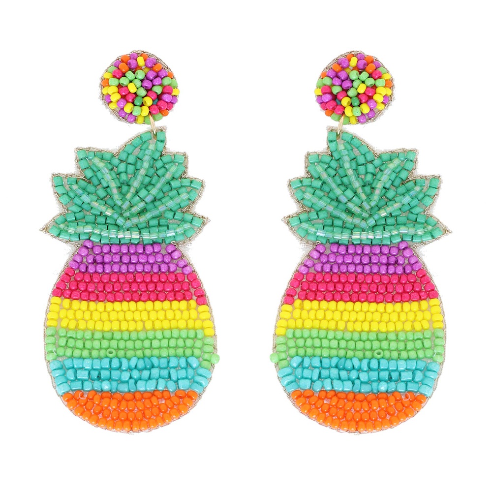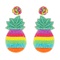 2-tier Tropical Rainbow Pineapple Beaded Embroidery Long Drop Earrings