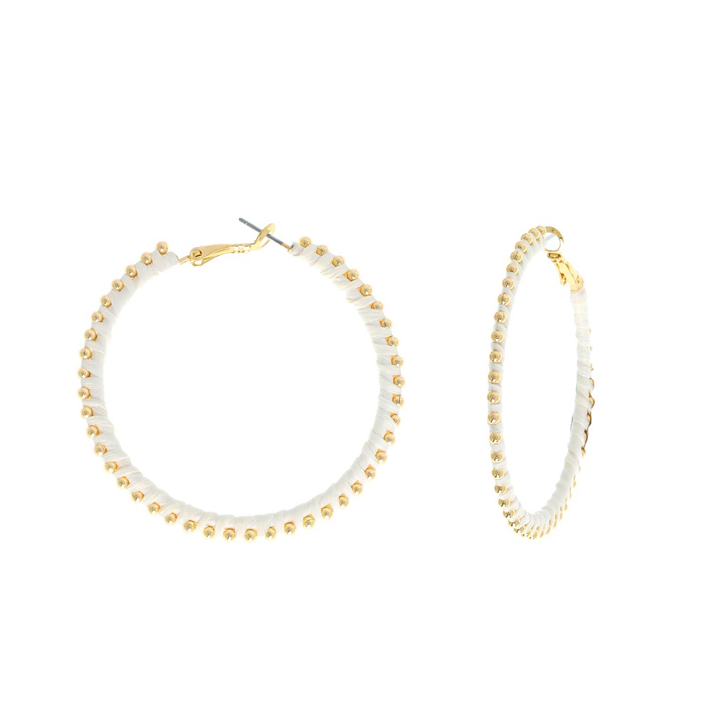 Raffia Wrapped Beaded Hoop Earrings In Gold Tone Metal