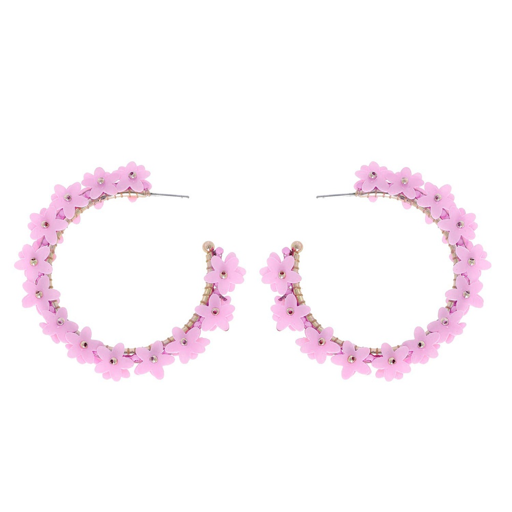 Acrylic Floral Beaded Open Hoop Earrings In Gold Tone Metal