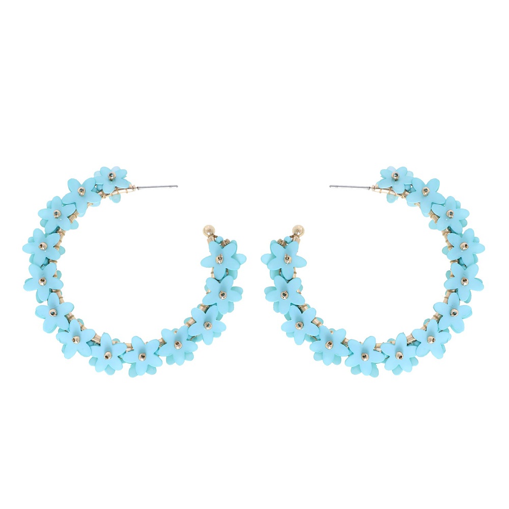 ACRYLIC FLORAL BEADED OPEN HOOP EARRINGS IN GOLD TONE METAL