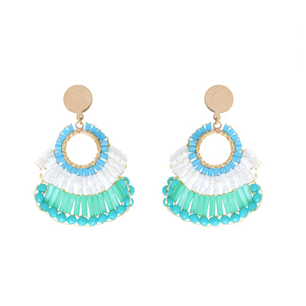 2-tier Open Circle Beaded Fan Fringe Earrings In Gold Tone Metal