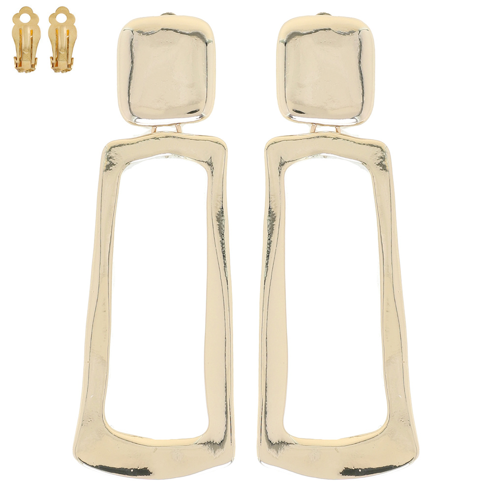 2-tier Hammered Metal Irregular Open Rectangle Long Drop Clip-on Earrings